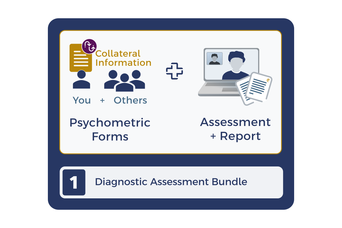Pathway 2 combines the psychometric questionnaires and diagnostic assessment into one streamlined service with a single payment.